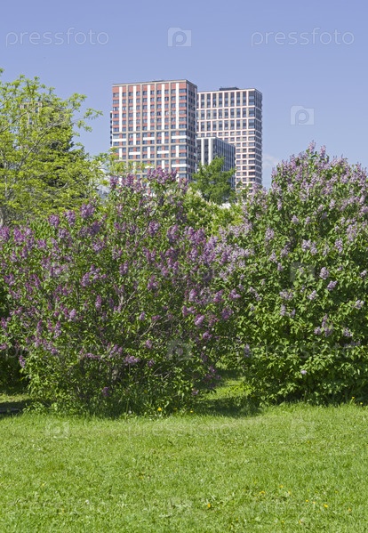 Сиреневый Сад в Москве (Щелковское шоссе, 8) в период цветения. Солнечный день в конце мая