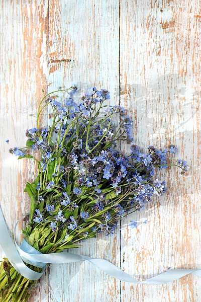 Красивые весенние цветы незабудки на светлом деревянном фоне, баннер. Абстрактная цветочная композиция, натюрморт с местом для текста, цветочная праздничная открытка, концепция летнего приветствия, выборочный фокус