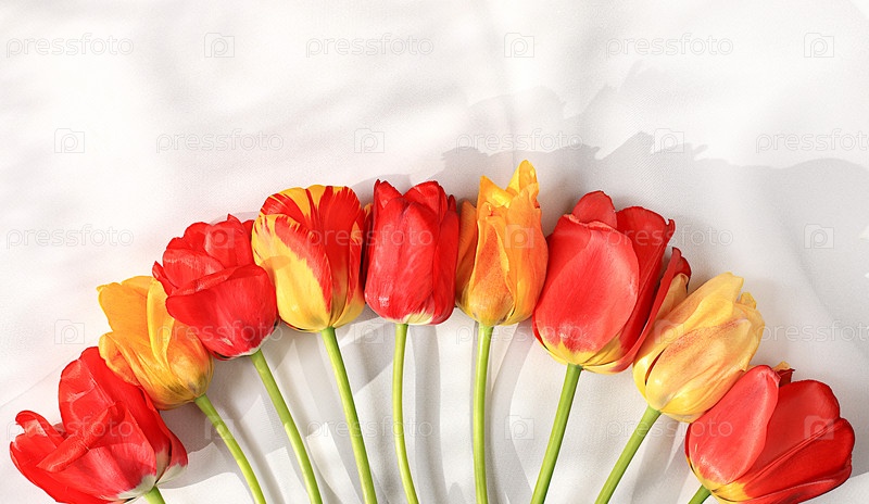 Красивые весенние цветы тюльпаны на солнечном фоне, баннер. Абстрактная цветочная композиция, натюрморт с местом для текста, цветочная праздничная открытка, концепция летнего приветствия, выборочный фокус