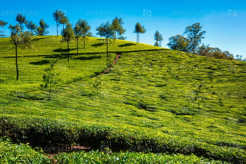 Плантация зеленого чая утром. Муннар, штат Керала, Южная Индия