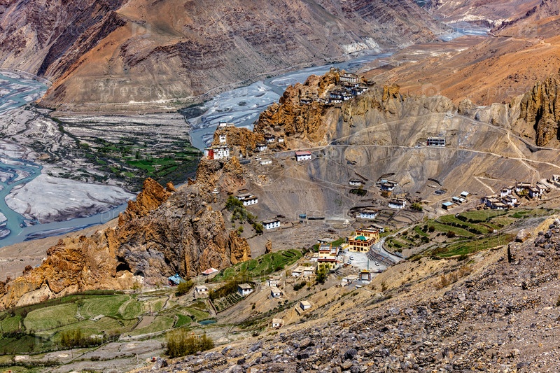 Монастырь Дханкар, расположенный на скале в Гималаях, Индия