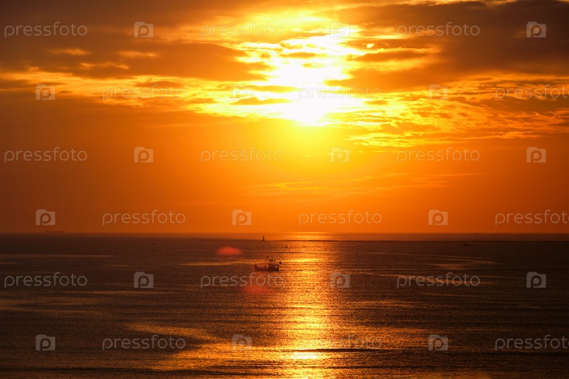 Морской закат с лодками