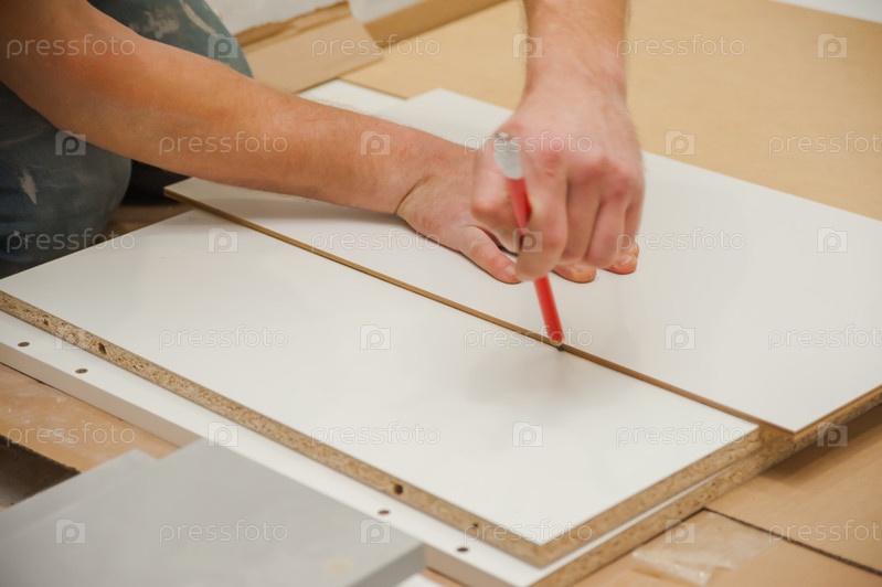 Мужчина в процессе сборки и производства мебели