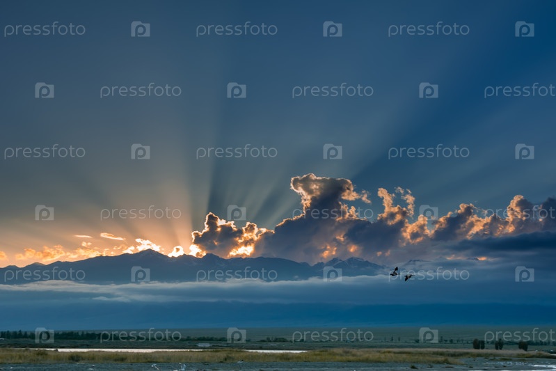 Лучи солнца сквозь облака на закате
