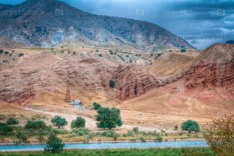 Одинокий дом в Ала-Букинском районе Кыргызстана, фоновый фокус