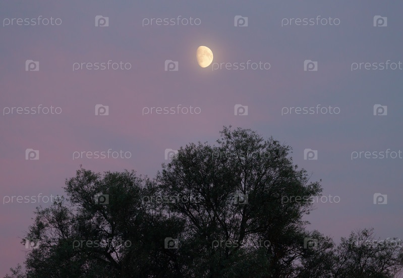 Растущая луна на закате и силуэт дерева
