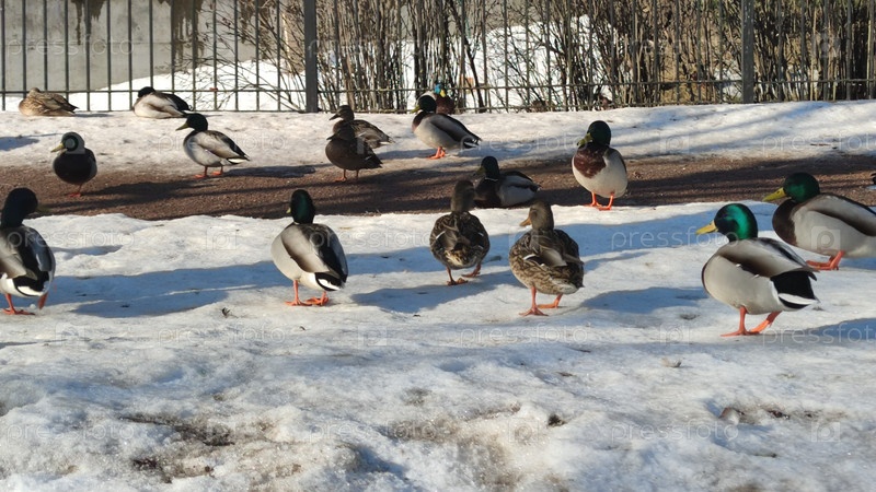 Дикие утки в снегу