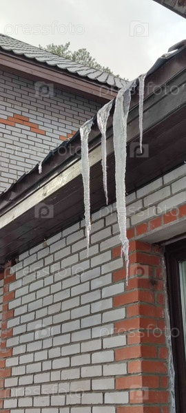 Длинные сосульки свисают с крыши