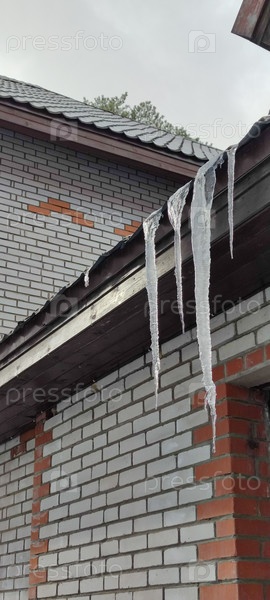 Длинные сосульки свисают с крыши
