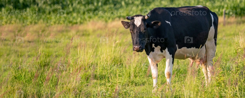 Коровы пасутся на сочном лугу в летний день