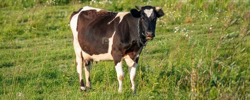 Коровы пасутся на сочном лугу в летний день