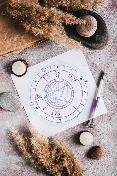 Астрологическая натальная карта для предсказания судьбы на листе и ручке и вертикальном виде