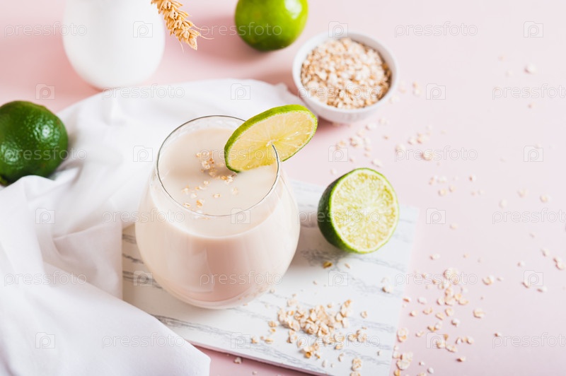 Овсяный модный напиток для похудения из овсянки, воды и лайма в стакане
