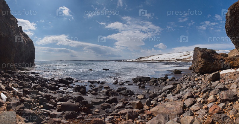 Россия. Дальний Восток. Курильские острова. Живописный скалистый берег острова Итуруп в Охотском море
