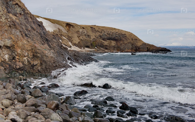 Россия. Дальний Восток. Курильские острова. Живописный скалистый берег острова Итуруп в Охотском море