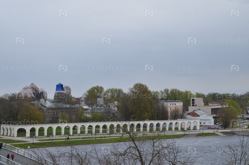 Вид на Торговую сторону Великого Новгорода: Аркада Гостиного Двора, Ярославово Дворище