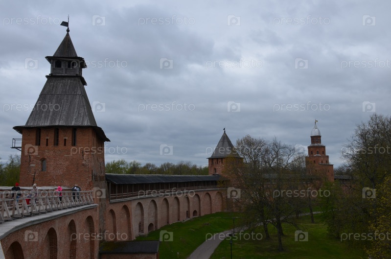 Крепостные стены Кремля Великого Новгорода, Спасская башня, Княжая башня и Башня Кокуй