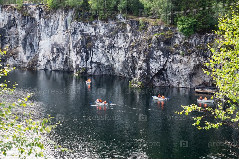 Рускеала, Россия - 7 августа 2020 года: Мраморный каньон горного парка Рускеала