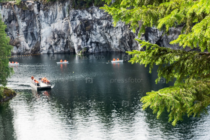 Рускеала, Россия - 7 августа 2020 года: Мраморный каньон горного парка Рускеала