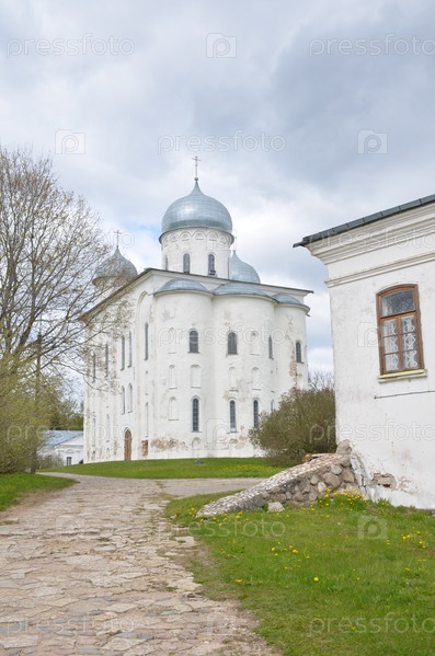 Георгиевский собор Юрьева (Свято-Юрьева) мужского монастыря в Великом Новгороде православный храм XII века (12 век), один из старейших памятников русской архитектуры, объект культурного наследия России