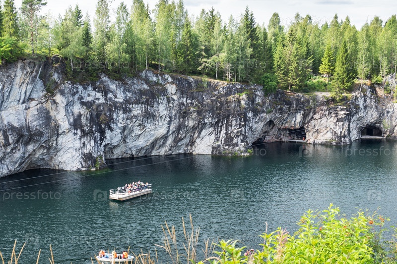 Рускеала, Россия - 7 августа 2020 года: Мраморный каньон горного парка Рускеала