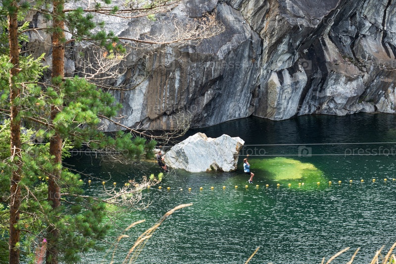 Рускеала, Россия - 7 августа 2020 года: Мраморный каньон горного парка Рускеала