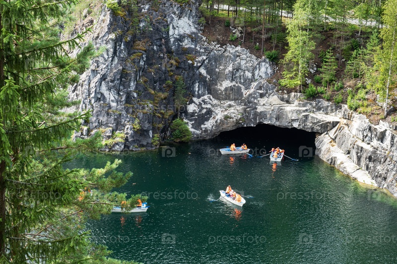 Рускеала, Россия - 7 августа 2020 года: Мраморный каньон горного парка Рускеала