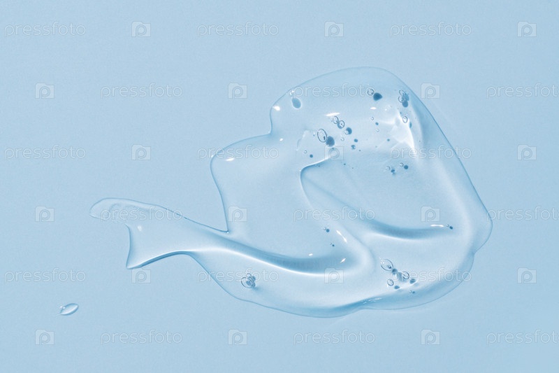 Крем-гель синего прозрачного косметического образца текстуры с пузырьками на синем фоне