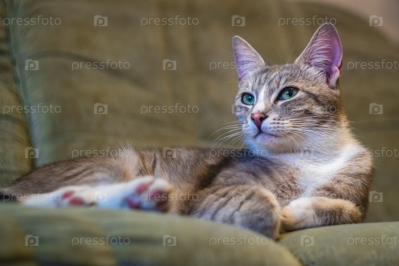 Изящный кот дома на диване