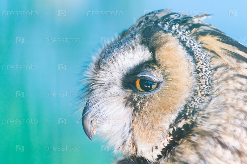 Совы в клетке в зоопарке. Сова на открытом воздухе. Милая сова сидит на ветке