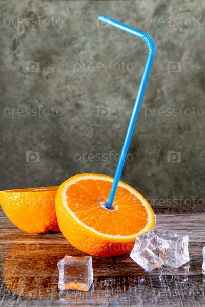 Апельсин с трубочкой для коктейлей. Ледяной апельсин. Сок со льдом