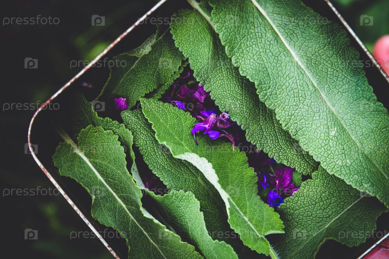 Сбор лекарственных трав. Травник собирает шалфей. Лечение травами