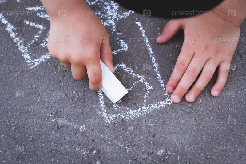 Дети рисуют мелом на дороге. Детское творчество на улице