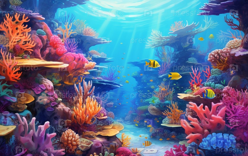 Небольшой подводный каньон, вырезанный волнами в переднем рифе с солнечным светом через поверхность воды