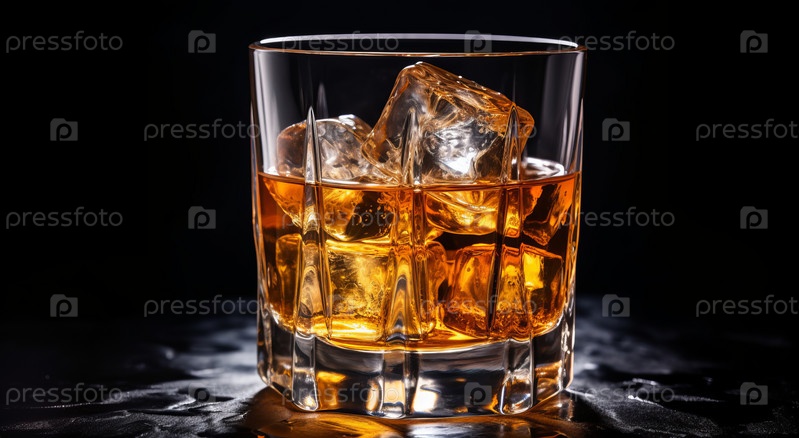 Виски со льдом в стакане, на темном фоне