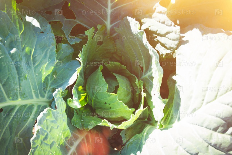Капуста при ярком солнечном свете. Концепция натуральных продуктов. экологически продукты