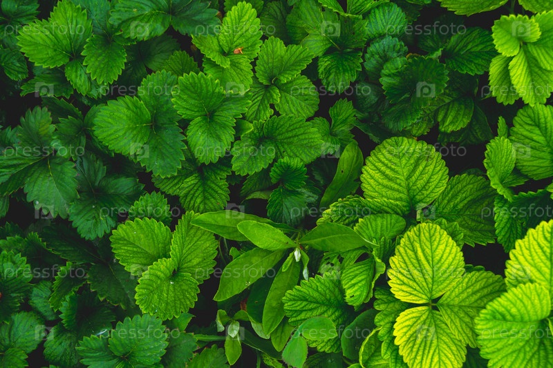 Фон из зеленой травы. Зеленые листья с каплями воды закрываются
