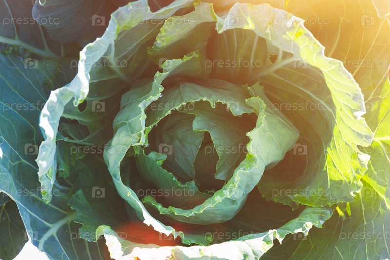 Капуста при ярком солнечном свете. Концепция натуральных продуктов. экологически продукты