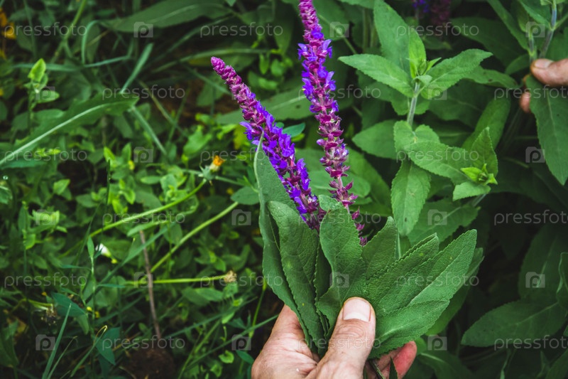 Сбор лекарственных трав. Травник собирает шалфей. Лечение травами