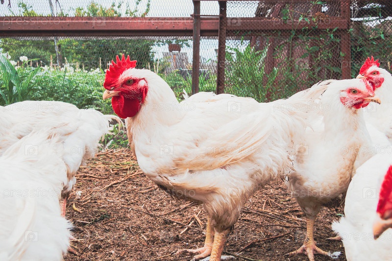 Курица. Сельское хозяйство. Разведение кур. Петух крупным планом. большой белый петух