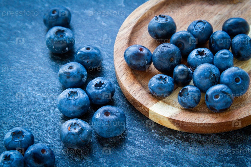 Черника на деревянном столе. Свежие ягоды. Дикая черника на деревянной подставке