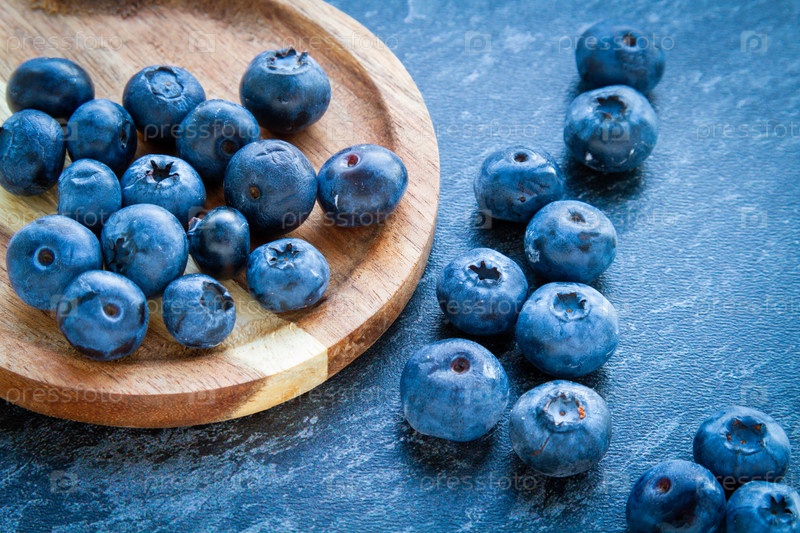 Черника на деревянном столе. Свежие ягоды. Дикая черника на деревянной подставке