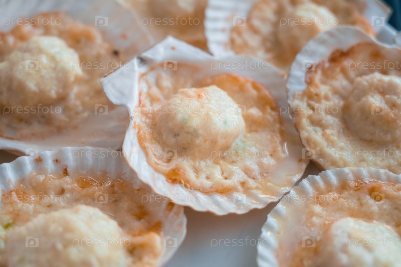Тарелка с деликатесными жареными гребешками с сыром