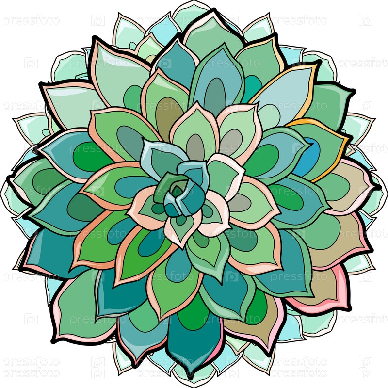 Суккуленты на мандале нарисованы вручную фигурой цветка пустыни. Дизайн цветочного сада для вектора пригласительного плаката