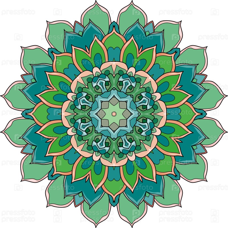 Декоративные круглые украшения. Необычная форма цветка. Восточный вектор, модели антистрессовой терапии. Переплетите элементы дизайна. Вектор логотипов йоги