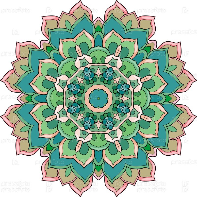 Декоративные круглые украшения. Необычная форма цветка. Восточный вектор, модели антистрессовой терапии. Переплетите элементы дизайна. Вектор логотипов йоги