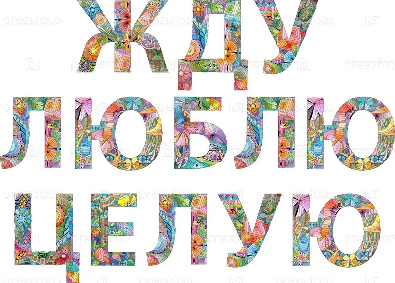 Иллюстративные слова WAITING LOVE KISS на русском языке для дизайна футболок, татуировок и других украшений