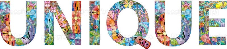 Иллюстративное слово UNIQUE для дизайна футболок, татуировок и других украшений