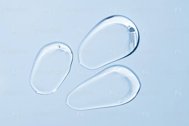 Косметические мазки кремовой гелевой текстуры на пастельно-синем фоне