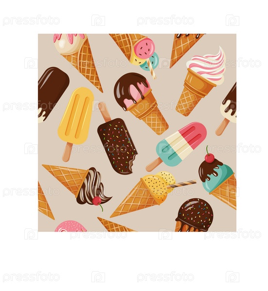Бесшовный узор с цветным мультяшным мороженым